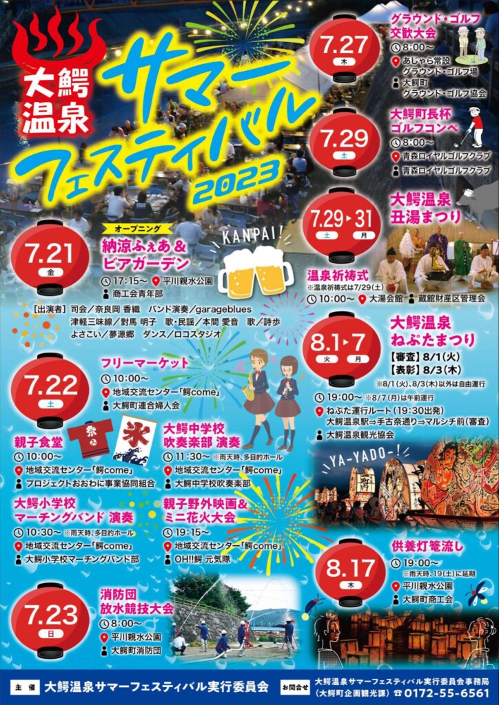 7月中旬から8月中旬までの期間に開催される大鰐町の夏祭りで、暑い夏を涼んでいただくためのイベントが目白押しです。